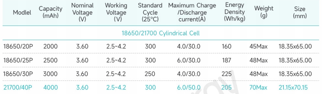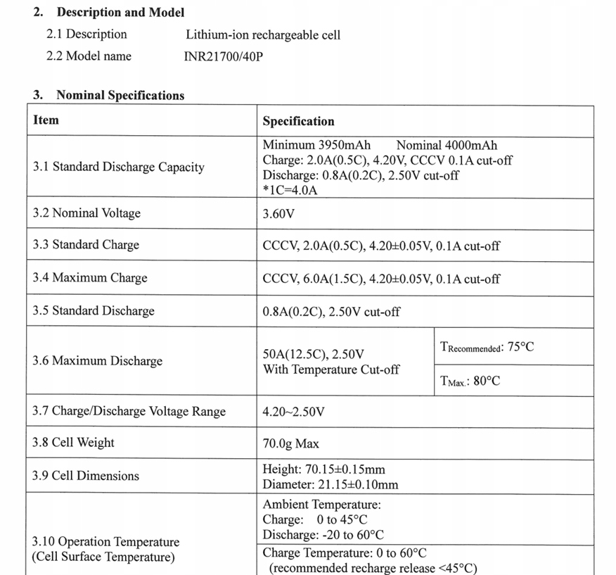 - Model: EVE INR21700/40P