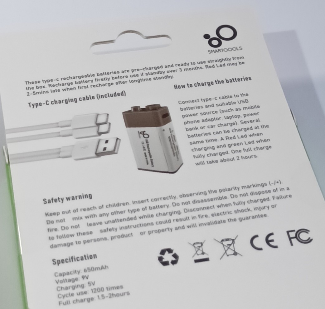 Dobíjecí 9V baterie s USB-C – konec jednorázovkám650mAh