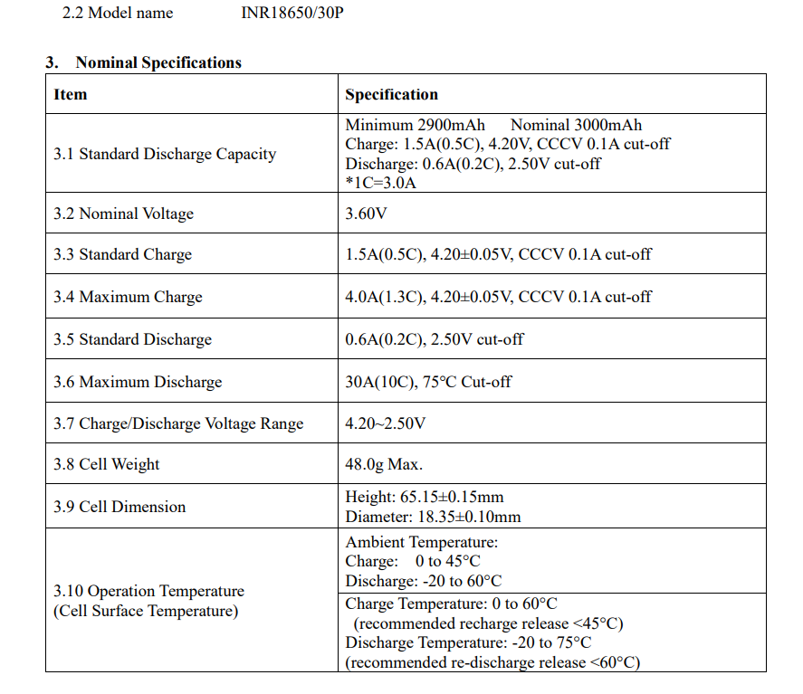 Model: INR18650/30P